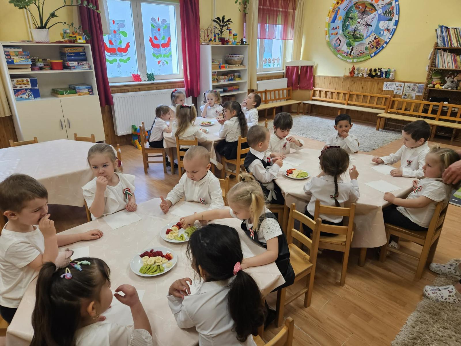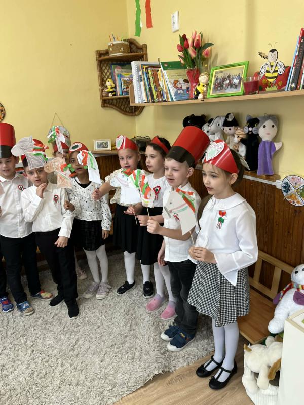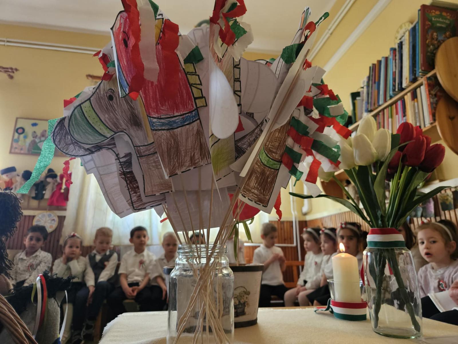 A gyermekek saját csoportjaikban emlékeztek meg Március 15-ről: Zenével, tánccal, verssel és természetesen készültek: huszár csákók és rengeteg gyönyörű dekoráció ami színesíti óvodánkat is és a helyi önkormányzat elé is kerültek ki az alkotásokból.