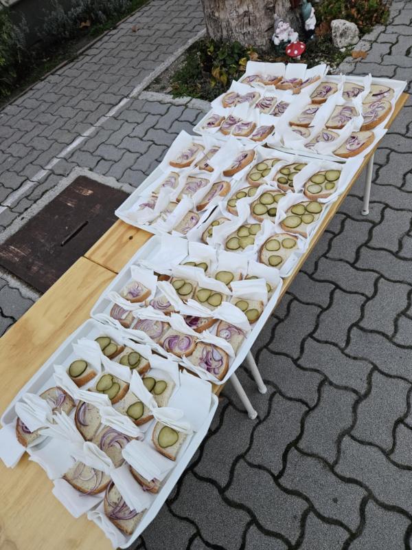 A gyermekeknek és szüleiknek meleg teával és zsíros kenyérrel kedveskedhettünk, amit ezúton is köszönünk a Sárosd-Sárkeresztúr Szociális Alapellátó Központ, Konyha és Bölcsőde vezetőségének.